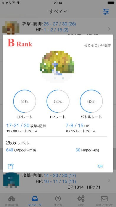 5. 詳細な個体値データ。レーティングやランクまで見れちゃう。