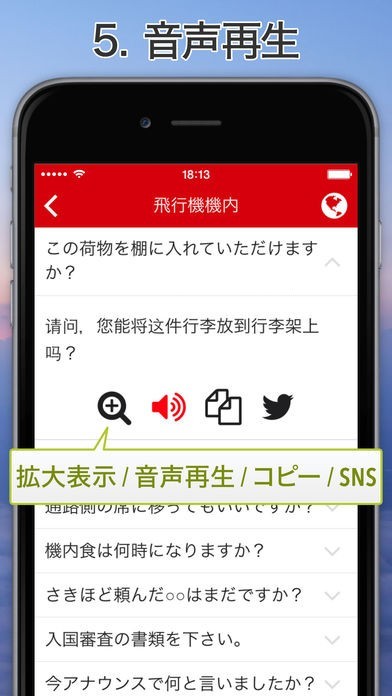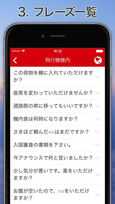 「Excuse Me Chinese」は中国語圏への海外旅行の際に役立つフレーズが多数収録されているアプリになります。飛行機の機内やタクシーでの行き先の告げ方、ショッピングのときに役立つフレーズなど、シチュエーションに合わせた中国語フレーズが多数収録されているので、必要な中国語を簡単に見つけることができます。