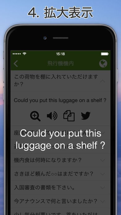 オフライン環境でも利用出来る!翻訳するフレーズをタップ操作するだけ!