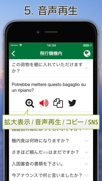 翻訳されたフレーズは音声再生できるので発音できなくても大丈夫!