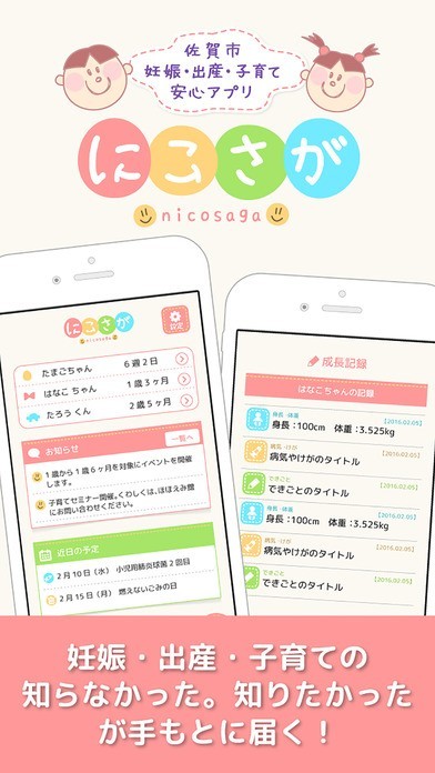 「佐賀市妊娠・出産・子育て安心アプリ 『にこさが』」スペック・仕様