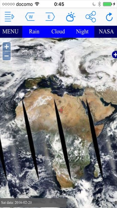 明るい緑の茶色の地球だけでなく、夜間で撮影したサテライト写真も眺められます。夜間でも明るい地域を認識でき、天気マークを投影でき気象情報を見るだけでなく昼間とは違った地球も楽しめます。