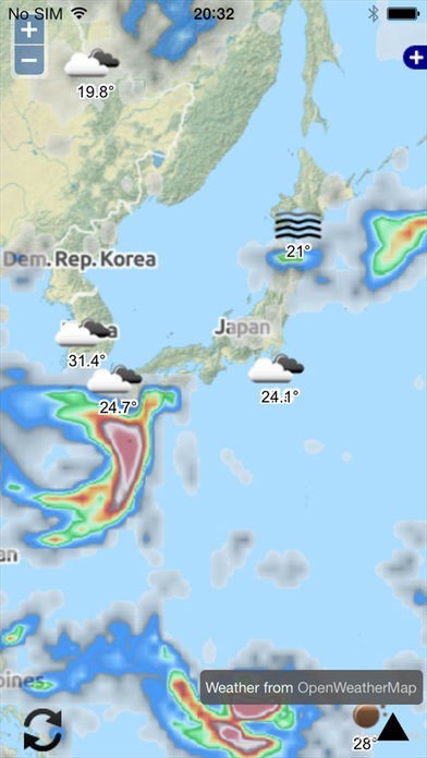 世界各地の天気をマップで確認出来るスマホアプリ