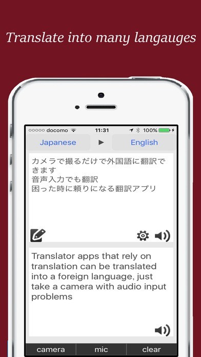 App Storeより引用話しかけると外国語に翻訳してくれる翻訳アプリです。