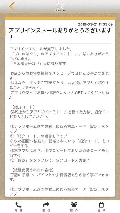 プロのほぐしのアプリをSNSを通じてお友達に紹介する事ができます。