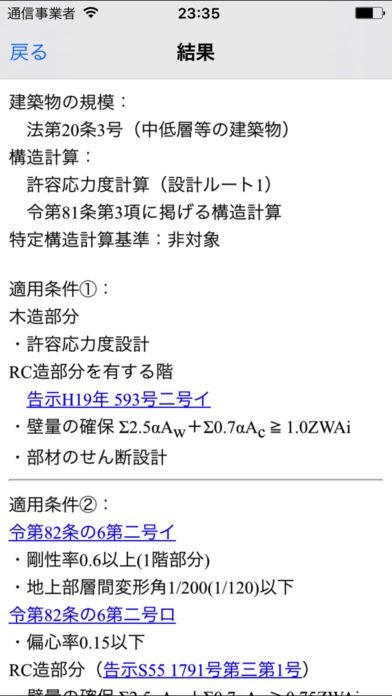 建築方法に関連した法律も見ることができます。法律に反していないかどうかの確認をするときに便利な機能になります。また、構造電卓の使い方と注意事項も載っているので、初めての方でも安心して使用できます。