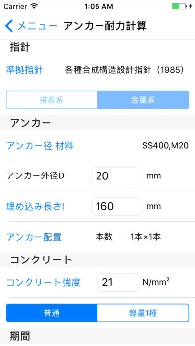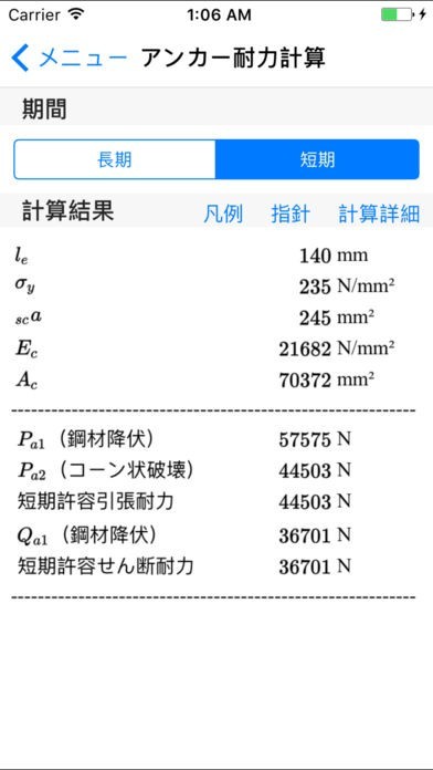 難しいアンカー耐力計算や有効投影面積計算が電卓で簡単にできてしまいます。操作はとても簡単で、空欄に数字を入力するだけです。アプリが計算をしてくれるので、すぐに計算結果が表示されます。