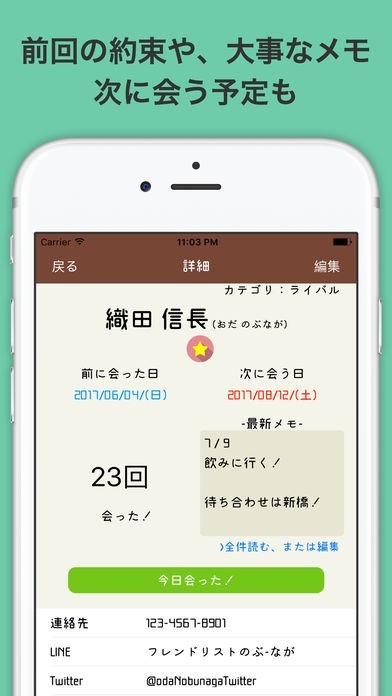 人付き合いをもっと楽にする、お手軽連絡帳です。