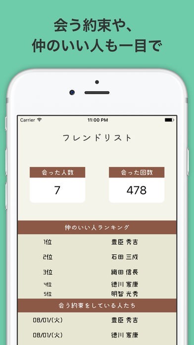 また、ホーム画面では仲のいい人やこれからの約束も見ることができ、手帳を開くストレスをなくしてくれます。