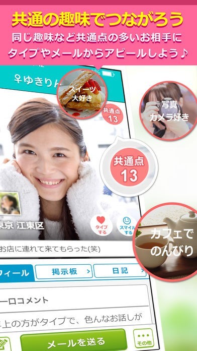 「出会いはイククル」アプリはなんとできてから17周年。こんなにも長く続いてる出会い系アプリなので安心して使用することができます。本名もバレることがないので安心できるのではないでしょうか。また、このアプリを利用しているのは1000万以。たくさんの人が利用しているからこそ素敵な出会いがあるでしょう。もちろんインストールも無料です。一緒に食事に行きたい、遊びにいきたい。また、実際に会わなくてもメールで相談したいなどさまざまな方に利用していただけます。