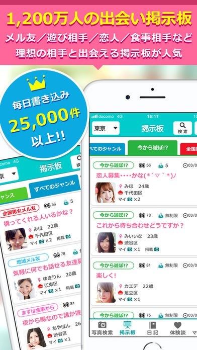 昔からある定番の出会い系アプリで利用者も多いです。新規登録すると無料ポイントも付きます。