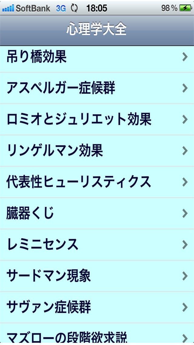 アプリ内には、心理学に纏わる重要な詳細情報などが数多く紹介されています。