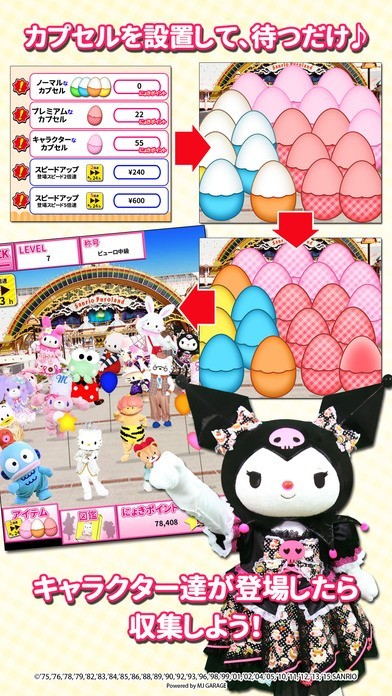 お馴染みのサンリオキャラクターがいっぱい!沢山集めて遊べるゲーム!