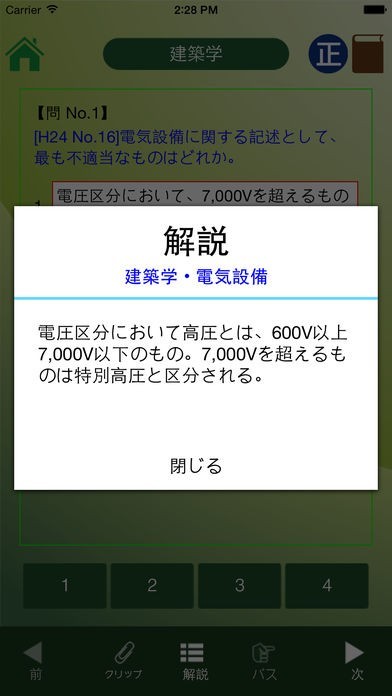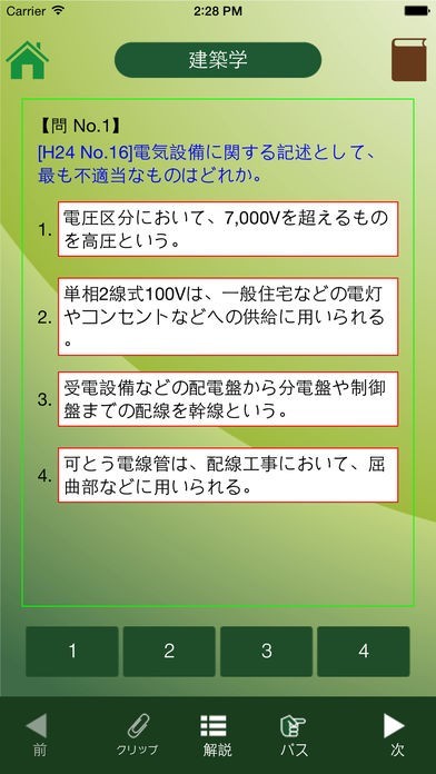 各カテゴリ毎の知識を正確に身に付け反復学習することで試験と同様の4択を採用しています。