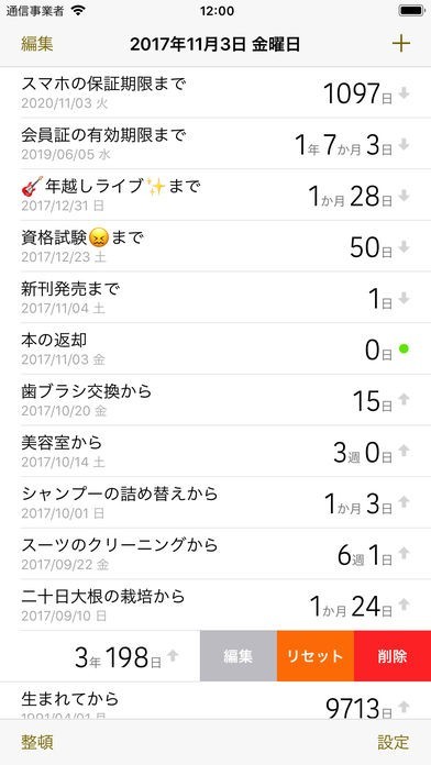 予定日までの日数を表示してくれるカウントアプリです。予定の日までを数えてくれるので、体調を整えたり、準備をしたりと、心の余裕が生まれます。また、いつまでにやらなければいけない事も把握しやすいので、きっちりとした予定を組みたい人にはとても役に立ちます。そして、過去に行った事も記録しておけるので、いつ検診に行ったか、いつ点検に行ったかなどを記録して、確認できるので、次はいつ頃行けばいいという事も把握しやすくなっています。過去の事を覚えておけるので、忘れやすい人にも最適です。