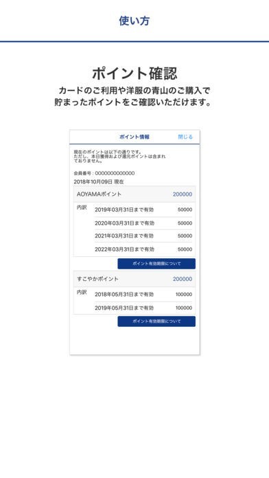 洋服の青山のメンバーズカード"青山カード"の公式アプリ、モバイル会員証として利用できる便利さが魅力