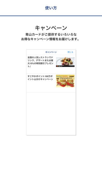 クーポン配信やキャンペーン情報などアプリ限定の特典が満載、青山カード会員の方必見