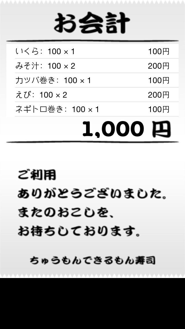 メニューを注文した回数がカウントされるので、自分でも暗記しておいて合計金額を暗算する訓練ができる!
