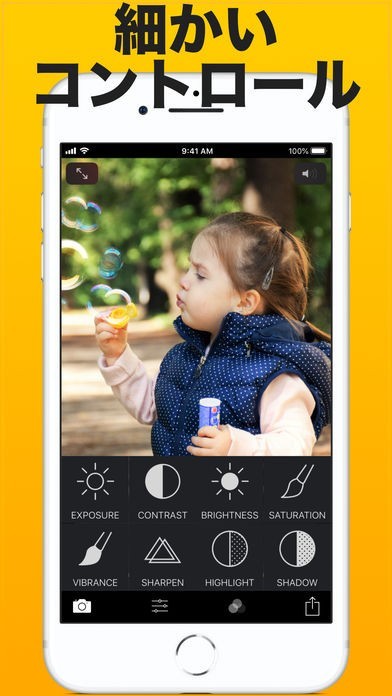 動画の明るさをユーザーの好みで変更可能です。様々な特殊効果を適応することもできるので、雰囲気にこだわった写真を作ることができます。編集に必要な機能が一通り揃ったアプリです。