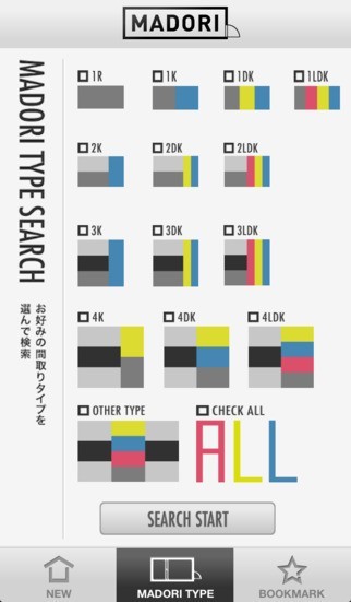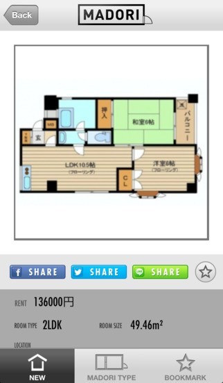 ひたすら間取り図を眺めていたい方必見!『MADORI』は、不動産物件の間取り図をメインにした不動産アプリです。 お洒落なデザイナーズマンションや賃貸アパートを取り扱うR-STOREが公式配信するアプリとなっており、掲載される間取り図にも素敵な物件が勢揃いしています。 ソート機能を搭載しており、1LDKや2LDKといったお部屋タイプごとのソートも可能。 お気に入りの間取りが見つかったら詳細情報の確認から内覧申し込みまでアプリで完結できるのも使いやすいポイントとなっています。