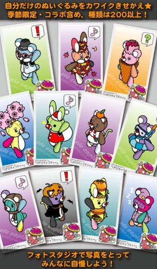 200種類以上の着せ替えが可能!お気に入りのぬいぐるみをゲットして着せ替えやマイルームで遊ぼう!