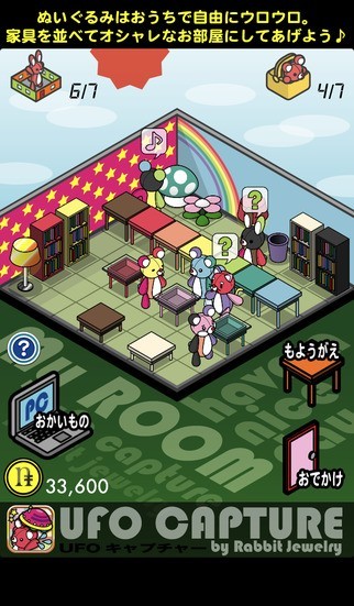 UFOキャプチャーは、アプリ内のゲームセンターでぬいぐるみをゲットするシミュレーションゲームアプリです。しかし単にぬいぐるみをゲットして終わりというわけではなく、ぬいぐるみをつかってお部屋をかわいくアレンジしたり、購入したぬいぐるみ用の服を使ってかわいくコーディネートしてあげることもできます。ゲーム内には様々なぬいぐるみが大好きなコレクターが登場します。レアリティの高いぬいぐるみを売ることができれば更なるぬいぐるみをゲットするための資金を確保できます。