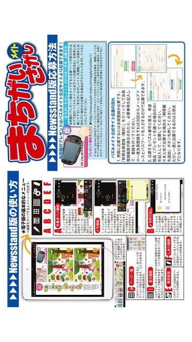 イラストのまちがい探しゲームが出来るパズルゲーム雑誌の公式アプリ版です。発売日にアプリも更新されるのでスグに雑誌を購入したいゲームファンにはたまらないバージョンです。紙の雑誌と同じように、問題が解けたらプレゼント抽選に応募もできます。(専用はがきが必要な場合を除きます)購入料金は2ヶ月分480円・6ヶ月分1300円・12ヶ月分2400円となっています。紙の雑誌は1冊500円なのでアプリ版を購入する方が半額以上お得になります。試し読みはもちろん無料です。