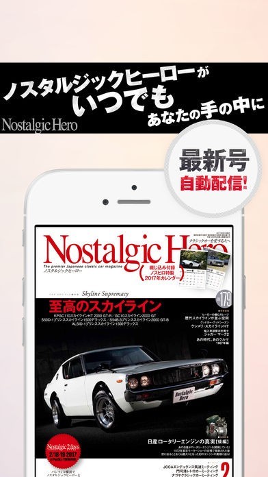 「Nostalgic Hero」は過去の名車にスポットを当てたクルマ雑誌です。車に興味がない人でも聞いたことがあるような名車やクラシックカーのイベントなどをを毎号特集しています。