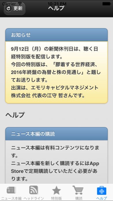 メリット:文字を追わなくても聞くことで新聞の情報が把握できるので、目を休ませたい時やながら読みをしたい時など、手軽に新聞をチェックしたい時に便利なアプリです。ヘッドラインのみなら無料で聞くことができます。