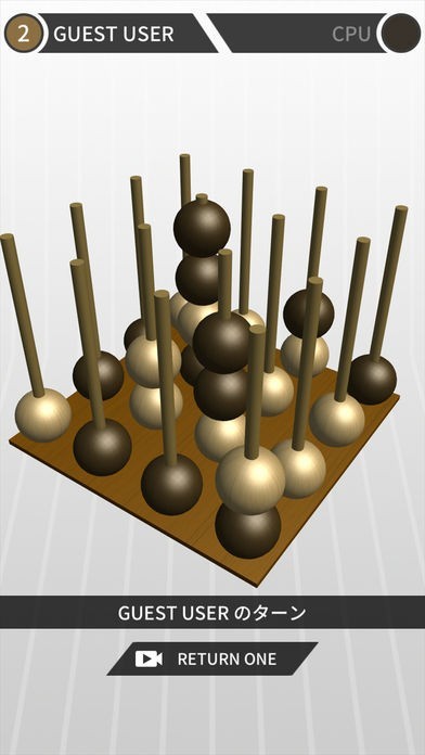4x4の三次元に並んだポールに自分の色の球を縦横斜めいずれかに4つ並べれば勝利!