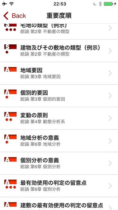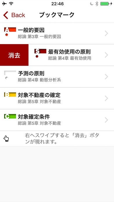 このアプリを利用することで、電車やバスでの通勤時間や休憩時間などに不動産鑑定評価基準を学べます。重要なキーワードは赤字やアンダーラインで強調されているため、効率よく暗記を行えます。