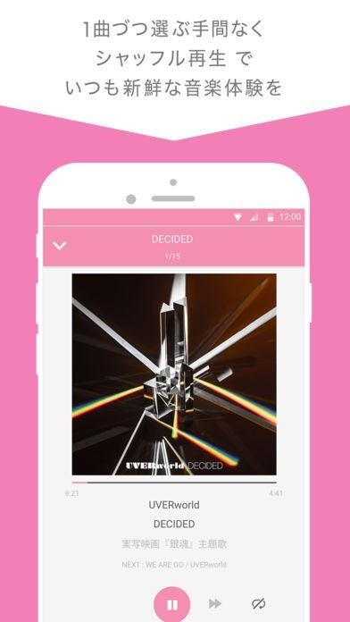 ストリーミング再生に対応した音楽アプリなので、すぐに音楽を聴くことができます。ドラマやCMで流れる新曲、カラオケで人気の曲、ダウンロード数の多い曲など…気になった時にすぐ聞ける!わざわざパソコンから転送したり、1曲ずつダウンロードサイトで購入する必要もありません。