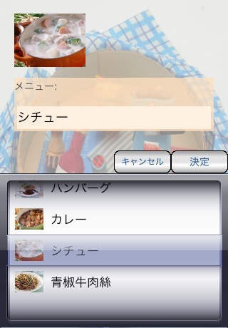 メニューごとに必要な食材をリストアップ可能