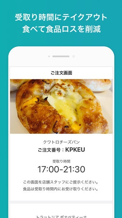 気に入った食品が見つかったら、あとは決済不要で予約をするだけです。受け取り時間が表示されるので、その受け取り時間の間に店舗に食品を直接テイクアウトしに行くだけです。