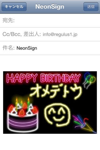 ネオン画像のメール送信やグリーティングカード作成も可能