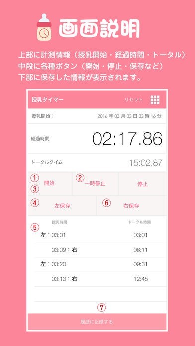 授乳タイマー:授乳期のママのための「授乳時間計測」アプリのスクリーンショット