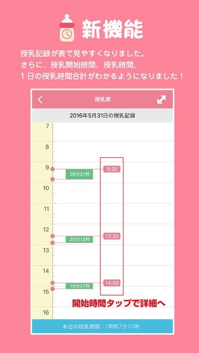 毎日の授乳時間を正しく記録することで、お子様の育児に役立てていただければと思います。