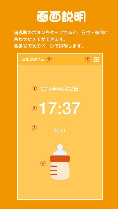 画面をタップするだけでミルクをいつ、どれだけあげたか保存できる
