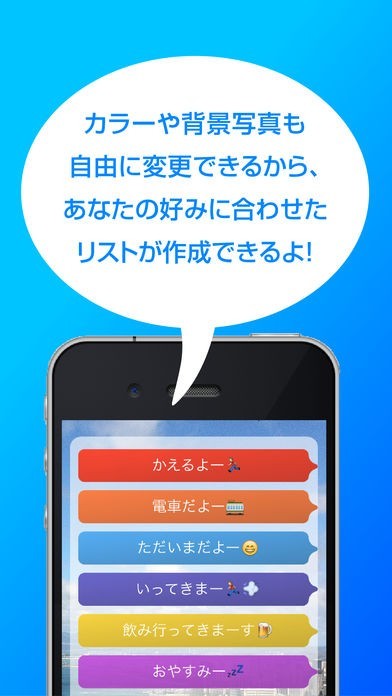 リスト画面の吹き出しタブの色や、背景写真も変更も出来るので、好みに合わせてカスタマイズしてください!