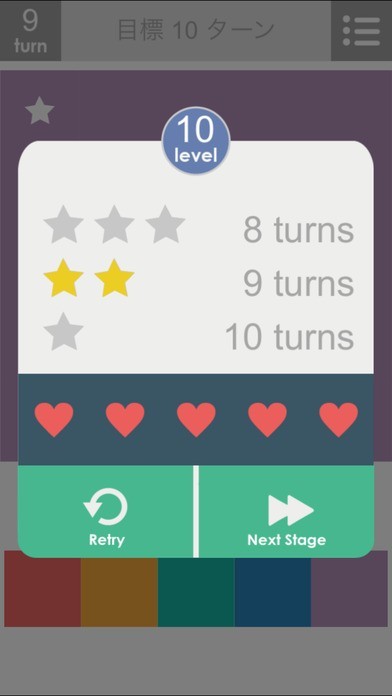 より少ない手数ですべてのブロックを色に変えて全100ステージを星3つ獲得しよう。