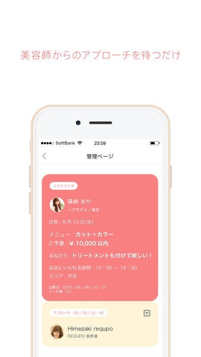 検索をかけてお店を探す必要なし!条件に合った美容師からお誘いがくる!