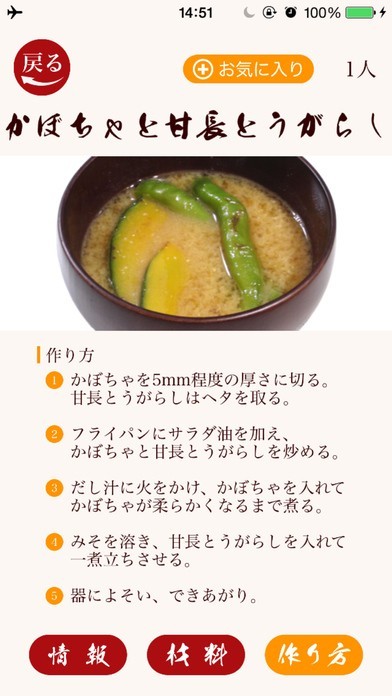 具材や味噌の種類からお勧めの味噌汁を提案してくれる!好みのレシピをブックマークに管理する事も可能!