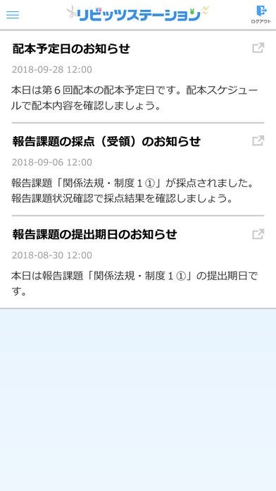 報告課題の提出締め切り日や提出確認、締め切り超過などの課題に関するお知らせや、配本予定日や配本停止のお知らせなど大切なお知らせをプッシュ通知でお知らせしてくれます。
