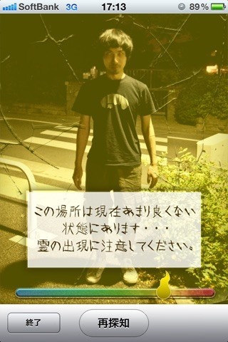 画面が赤く光った場合は、悪い幽霊やおばけの出現を表し、また、青く光った場合は、探知者を良い方向へと導いてくれる幽霊やおばけの出現を表しています。