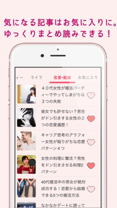 『ホットガールズ』は、アラフォーやバツイチ女子に嬉しい情報をたっぷり配信しています。恋愛、婚活に美容やコスメなどの女子向けジャンルを7以上用意し、気になる最新情報を毎日掲載。大人のための海外ライフなど、イマドキの若者向け情報とは一味違った情報が用意されているのも嬉しいポイントとなっています。オフライン機能を搭載しており、読み込んでおいた記事はネット接続がない場所でも閲覧できるなど、通勤中の暇つぶしにも最適。ランキング機能をチェックすれば、皆に人気の記事を一目で把握することもできるでしょう。気になるタイトルはお気に入り登録しておいて、後ほどゆっくり見返すといった使い方も便利です。