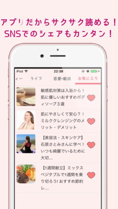 ホットガールズは、恋愛、婚活、美容、ダイエット、グルメ、トラベル、妊活、転職などの情報を毎日配信してくれるアプリです。その内容は、大人の女性のための情報が中心になってます。これらの記事は、オフラインでも読めるのがポイントです。そのため、電波が入りにくい場所でもサクサク読み進めることができます。『読みたい記事見つけたのに、今忙しくて読めない~』なんて時は、お気に入りに追加してください。そうすれば、後でいくらでも読み返すことができます。本アプリの内容は、FacebookやTwitterで簡単にシェアできるので、仲間と共有するのも楽しいかもしれません。