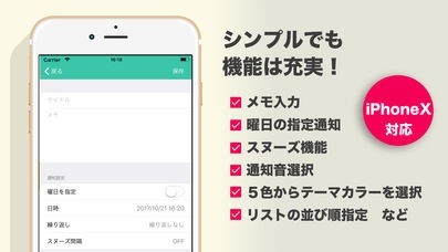 App Storeより引用指定した日時に予定を通知してくれるリマインダーです。