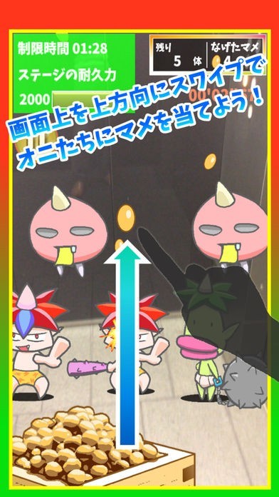 まめをまいてオニたちを倒す簡単ミニゲームアプリです。