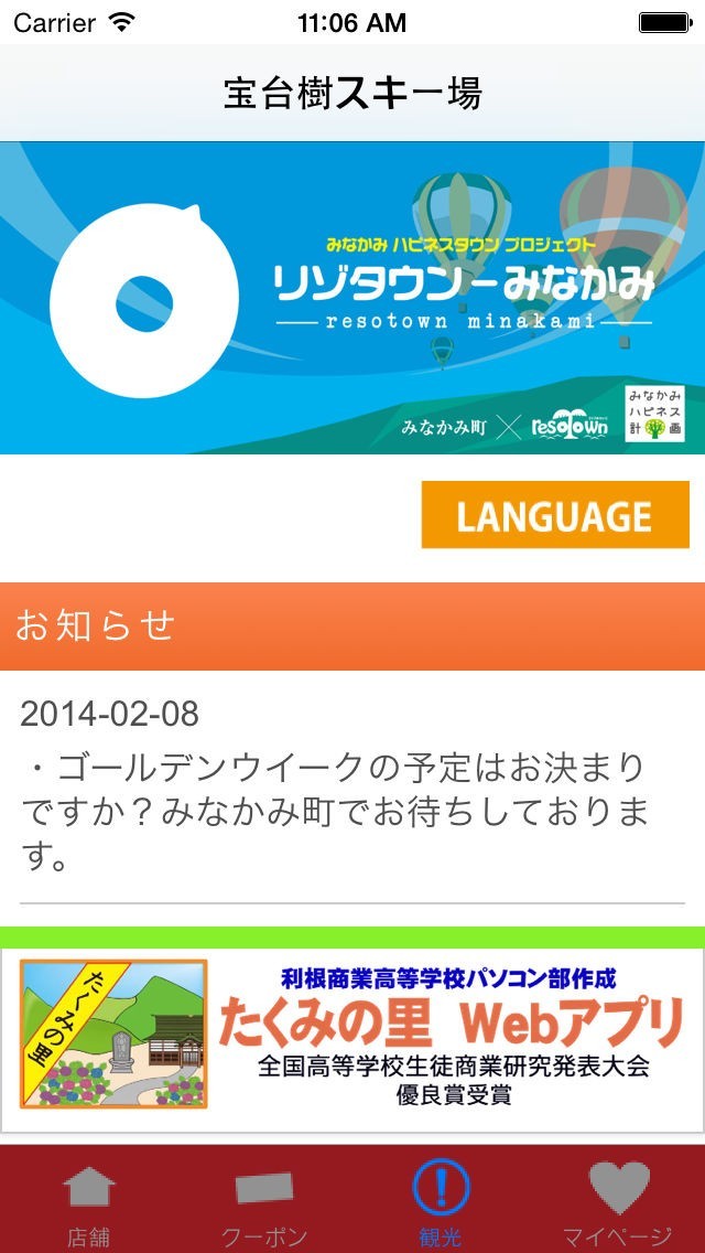 お店でも自宅でも移動中でも、手のひらの上から宝台樹スキー場と群馬県みなかみ町ならではの観光情報があふれ出します。