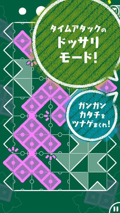 「ツナゲ!」はピースをつなげて消していくパズルゲームアプリ!操作は簡単、初めての人でも直感で遊ぶことができます。エンドレスのポッタリとタイムアタックのドッサリの二つのモードを搭載、クリアしていけば難易度もどんどんアップします。ヘルプアイテムを使用すれば戦略性も上がる!脳のトレーニングとしても最適です。また、黒板風の画面や人型のキャラクターチェックマンも魅力的です。遊べばチェックマンの衣装が手に入る!着替えれば自分だけのオリジナルチェックマンになります。